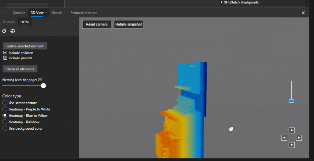 Built-in 3D visualization of the DOM, z-index, and layers that lets you see the page as stacked elements and quickly spot areas with excessive nesting. - Microsoft Edge DevTools documentation